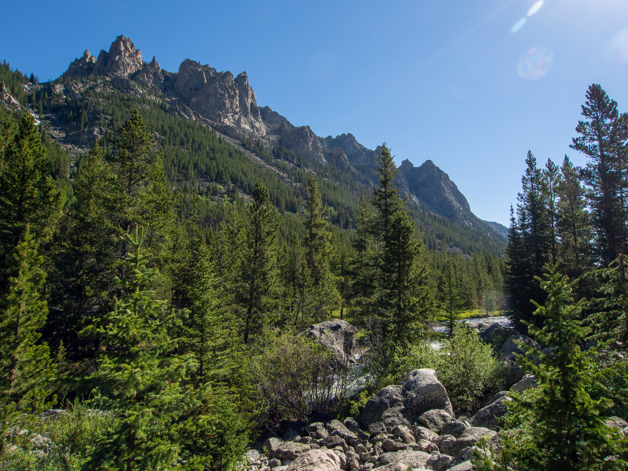 The second day we got up early to beat the heat and headed for Beartooth Passs. I found a nice hike alongside a river that Jake and I did – 7 miles round trip! It followed the river up to a small pond where we had some brunch and headed back before it got too hot.