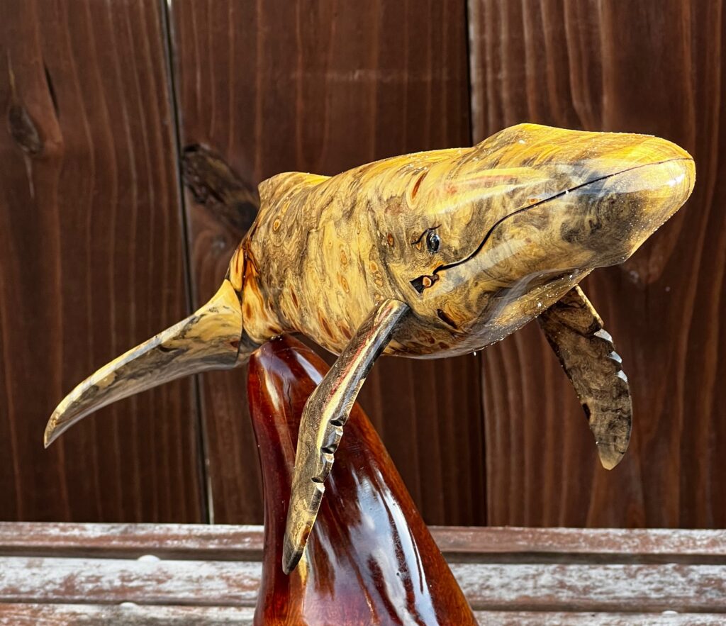 Buckeye wood (burl) from North California with Manzanita base carved by Bruce Stamp sold by Forest Gems Pt. Toownsend, WA Summer 2023
