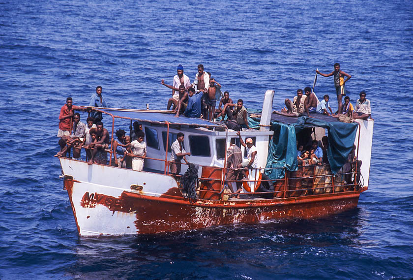 The natives at the time we visited seemed to be in dire straits. We came across a boat overflowing with natives adrift in the Bismarck Sea. Who can imagine the life they must have had?