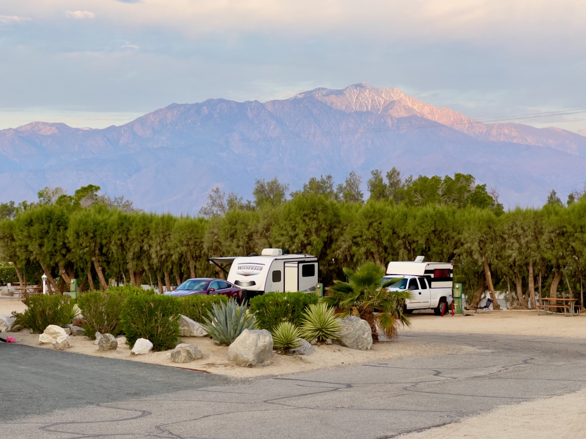 Previous Image Next Image Desert Hot Springs KOA Desert Hot Springs KOA with Mount San Jacinto in background