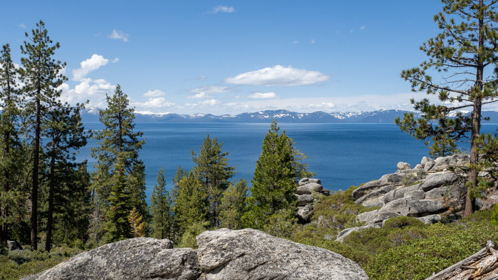 We visited Lake Tahoe on the first day in the area. We drove south again and entered the middle of the east shore. At 6,200 foot elevation, Lake Tahoe is the largest alpine-feed lake in North America. The water was amazing blue in the bright morning sun.