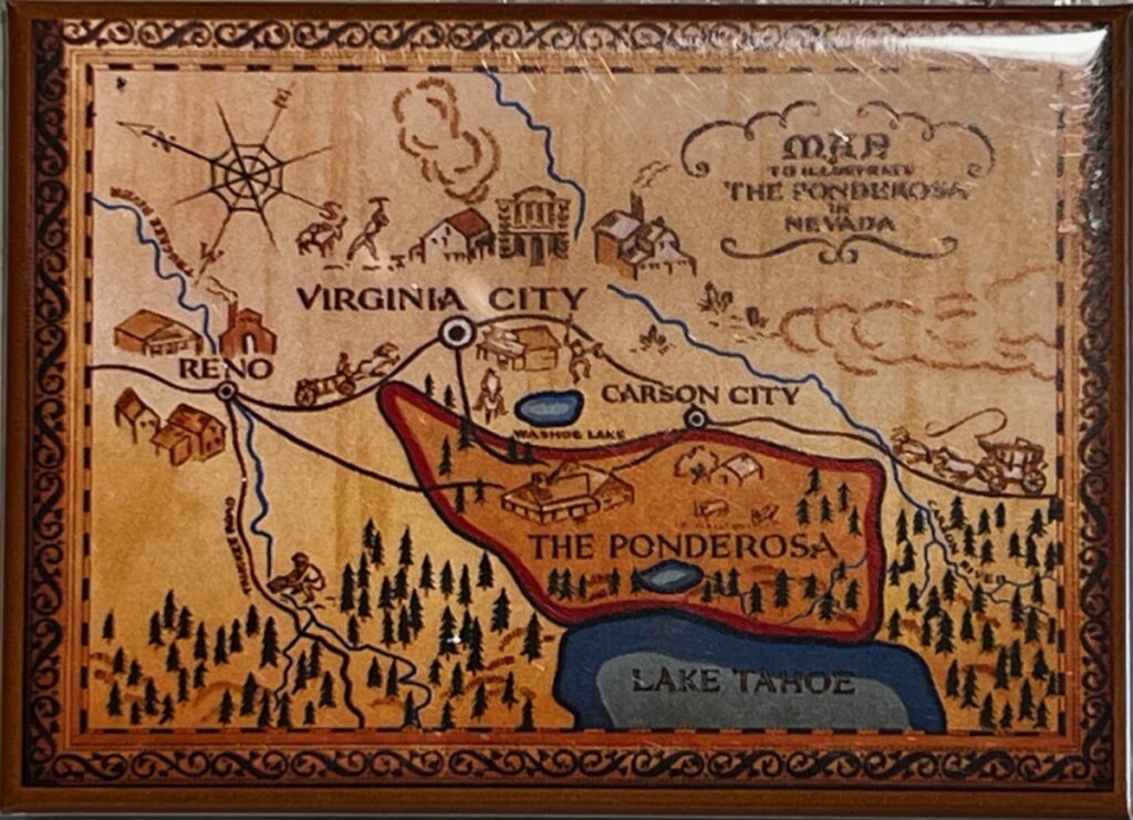 When I was visiting Virginia City I talked to a woman working in a souvenir shop about Ben and the Boys. She told me she always had a chuckle when they hopped on their horse and the next thing you know they are in Virginia City! Big place, the Ponderosa!