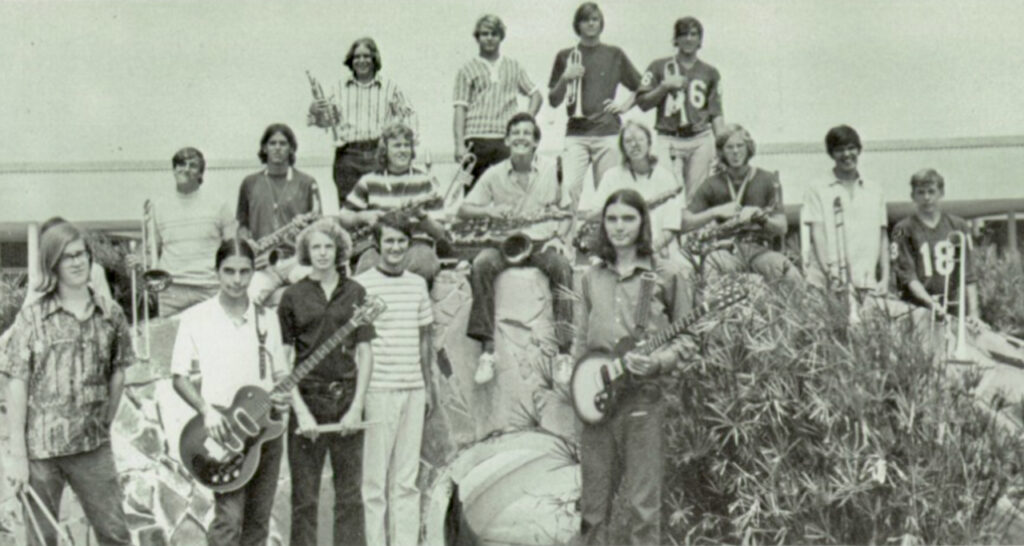 Around the same time, I started hanging out with neighborhood kids interested in music. We formed a band and called ourselves the Dead Peach. Through the end of high school, we played together either jamming or in our senior year as members of the high school jazz band. We had a ‘studio’ at an old motel on the beach – Terrace Dunes – where we would jam on weekends.