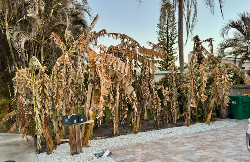 Yes, we have no bananas! Unfortunately, a lot of foliage took a big hit.