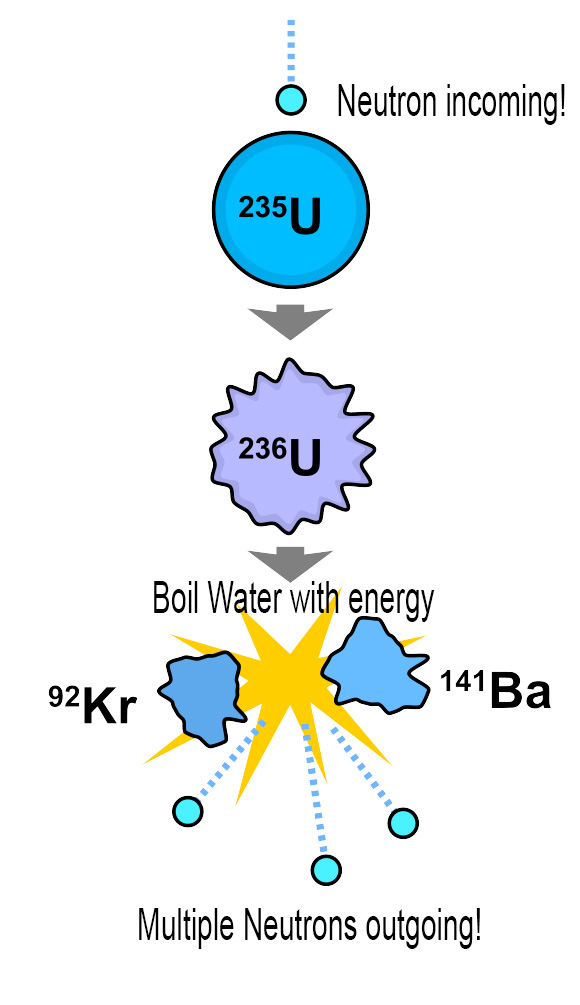 You control the chain reaction by slowing down some neutrons with water or more exotic materials like liquid sodium. All of this nonsense produces energy that can boil water, run an electric generator, and charge your iPhone.